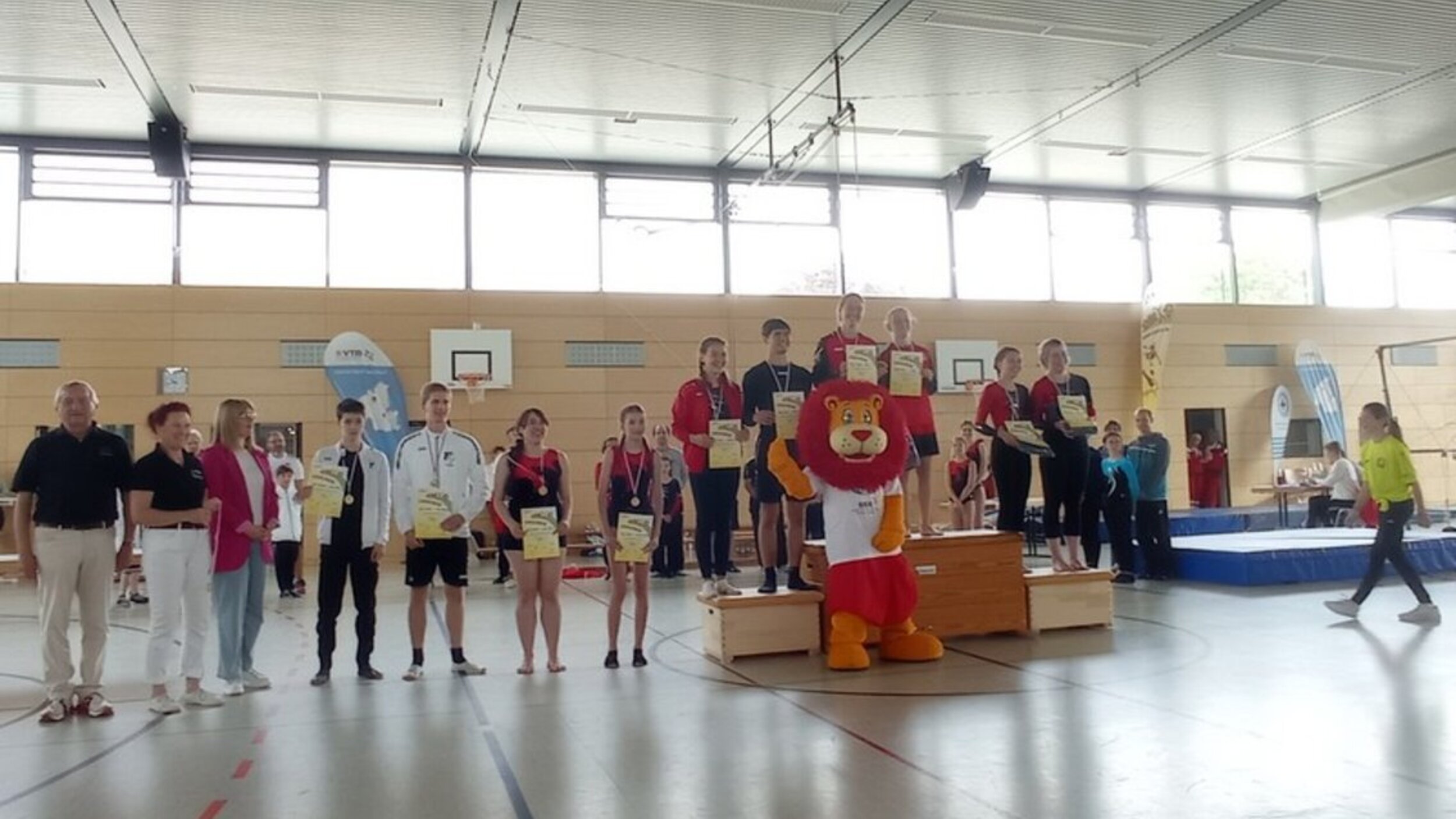 Im Anschluss daran waren die Turn10-Einzelwettkämpfe an der Reihe. Über 130 Turnerinnen und Turner kämpften in 10 Altersklassen um den Sieg. Am Ende freuten sich die Teilnehmer/innen über ihre erzielten Ergebnisse und bekamen zur Belohnung eine Medaille überreicht.