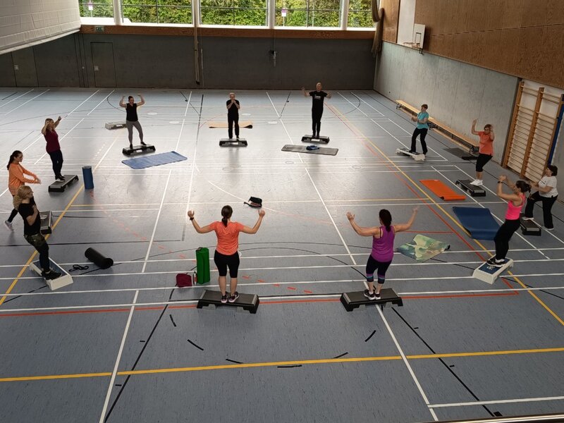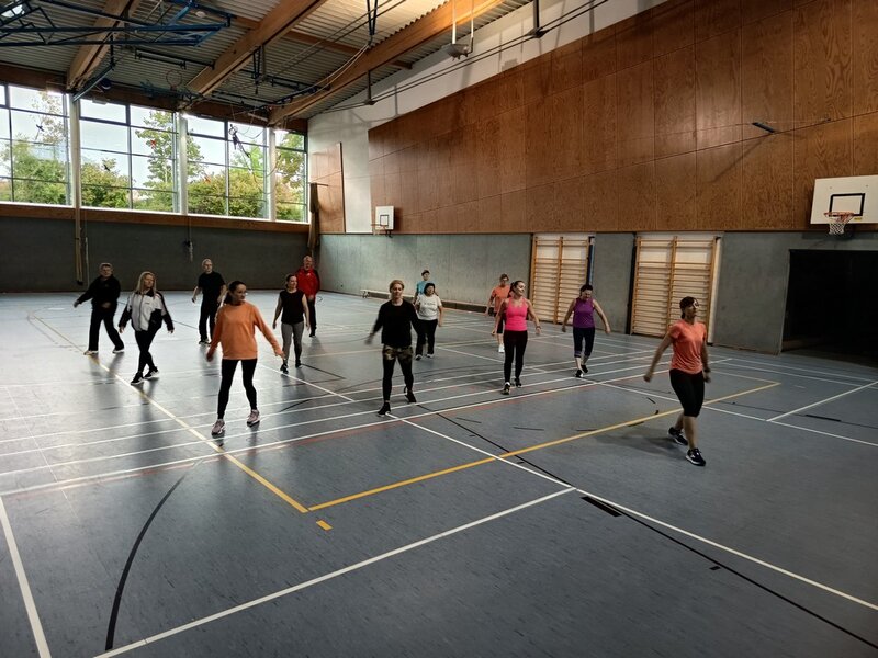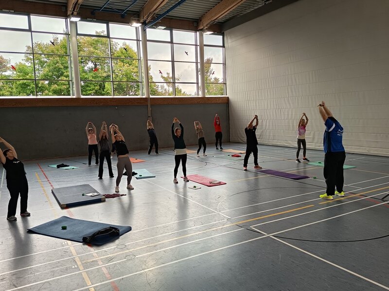 Am Sonntag Morgen brachte Elisabeth Hornung die Teilnehmenden mit einer Choreografie im Linedance in Schwung. Anschließend ging es mit schwungvollen Übungen am Stepbrett weiter.(kurzes Video: Stepbretter)
