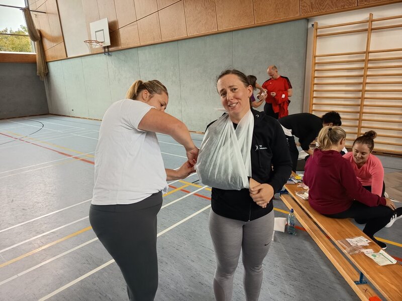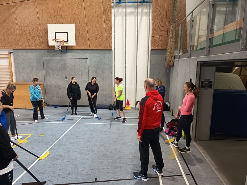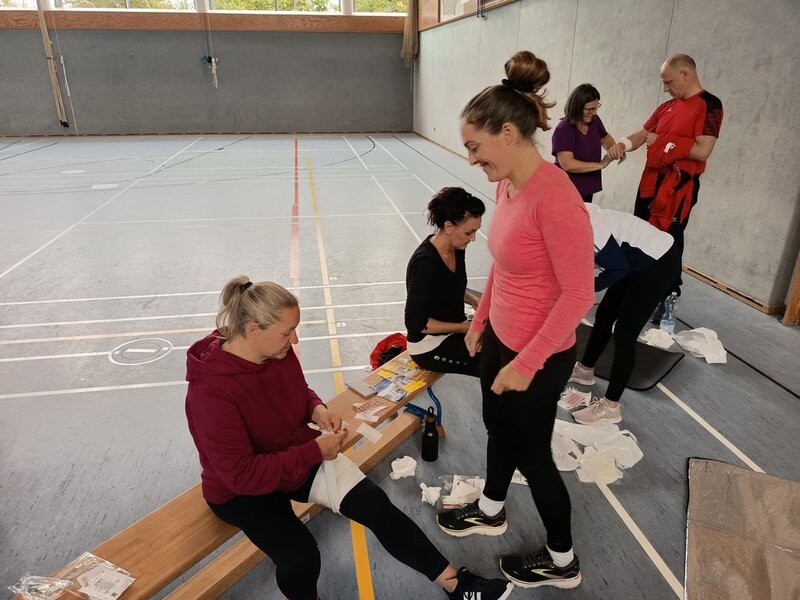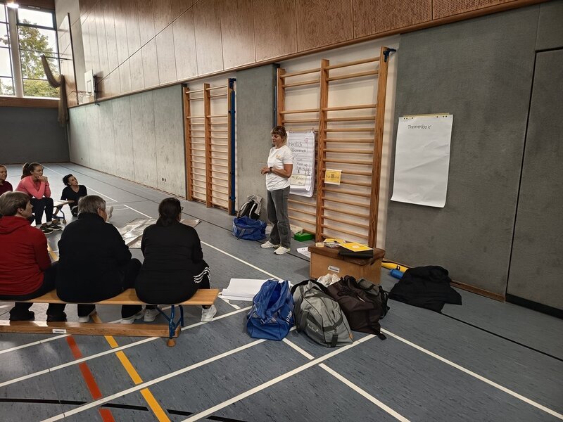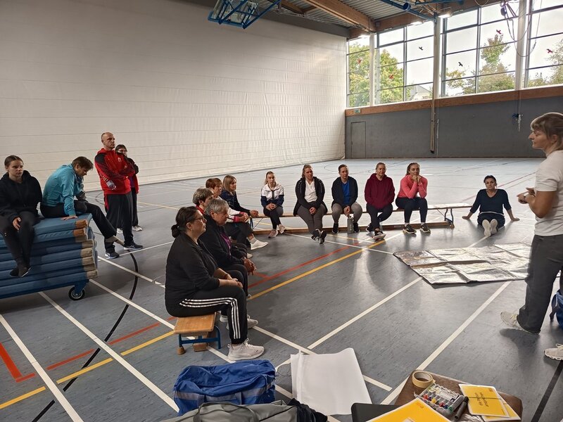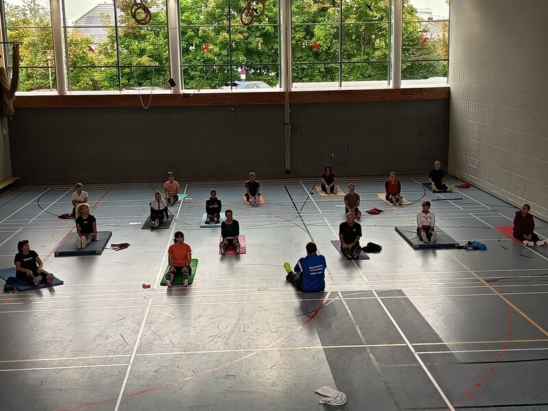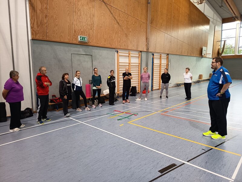 Am 27. und 28. September fanden in der Sebastian-Kneipp-Halle in Dillingen die 35. Breitensport-Aktionstage des Turngaus Oberdonau statt. Jürgen Frey, Vorsitzender des Turngaus, konnte über 30 Teilnehmende begrüßen. Er bedankte sich bei Erika Schweizer, stv. Gauvorsitzende Bildungsarbeit, die den Lehrgang wieder bestens vorbereitet hatte. Um ein möglichst breit gefächertes Angebot für alle anbieten zu können, wurden wieder zwei verschiedene Arbeitskreise gleichzeitig angeboten. Die eine Schiene befasste sich mit dem Kinderturnen, die zweite Schiene mit dem Bereich Fitness- und Gesundheitssport. Für den Bereich Kinderturnen konnten wir Martin Rehm gewinnen. Er gab den Teilnehmenden hier neue Impulse für das Aufwärmen und das Abenteuerturnen in der Turnhalle. Erika Schweizer brachte den Trainerinnen und Trainern anschließend Floorball näher. Am Nachmittag wurden von Katrin Kehl Sofortmaßnahmen bei Verletzungen im Sport besprochen und die Teilnehmenden durften auch selbst gleich üben.