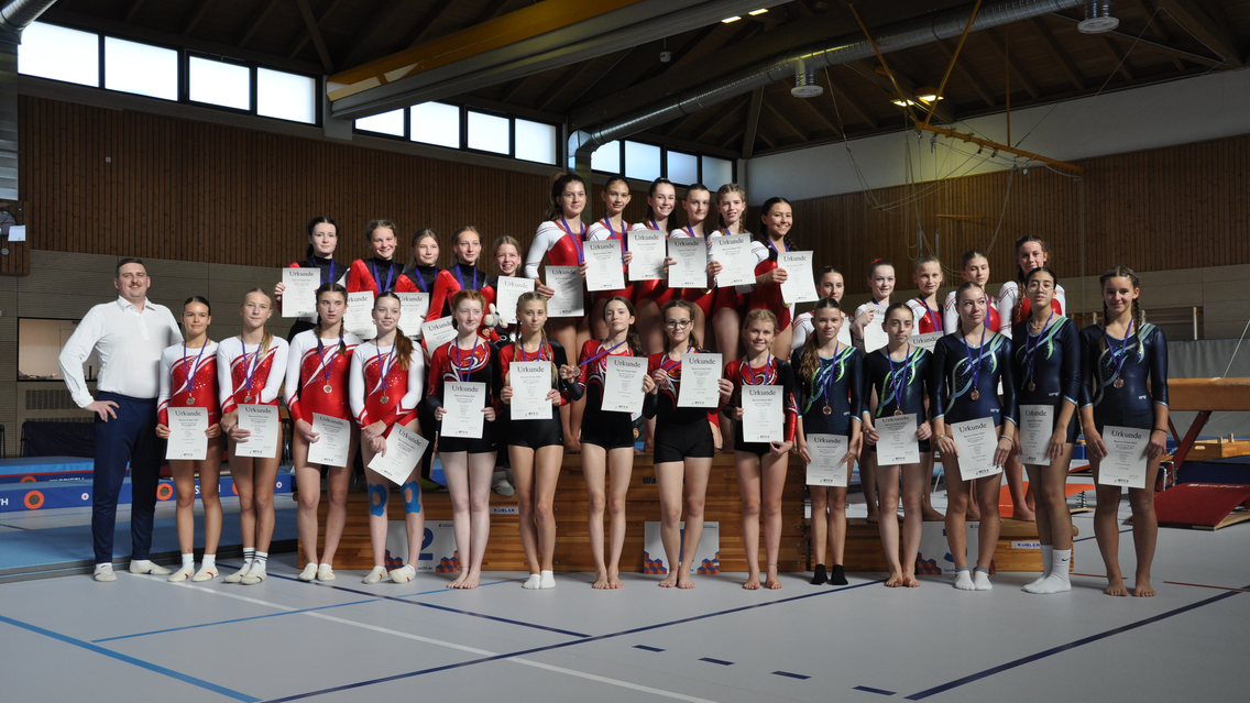Dort bot sich ihnen ein sog. Moskau-Boden dar - eine Bodenfläche, wie sie auch bei olympischen Spielen zum Einsatz kommt. Trotz dieses ungewohnten Terrains konnten alle Atletinnen ihre Übungen sauber und überzeugend präsentieren.