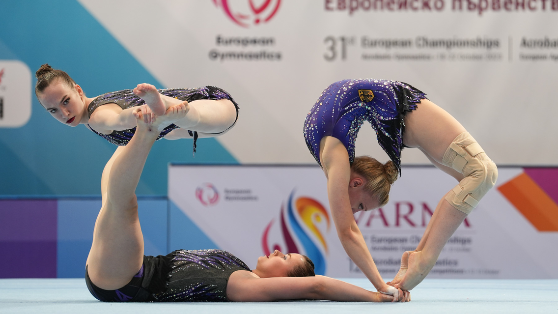 Große Freude herrscht beim Sportakrobatikverein Augsburg-Hochzoll 1957 e.V. Die strategische Aufbauarbeit der letzten Jahre trägt weiter Früchte. Das Damentrio Gloria Baur (19), Sabrina Wilbold (19) und Milla Neumayer (15) darf sich zusammen mit ihrer Trainerin Sandra Maresch über die Nominierung zur Weltmeisterschaft im September in Guimaraes, Portugal freuen und darüber, Deutschland dort als Teil der Nationalmannschaft vertreten zu dürfen.